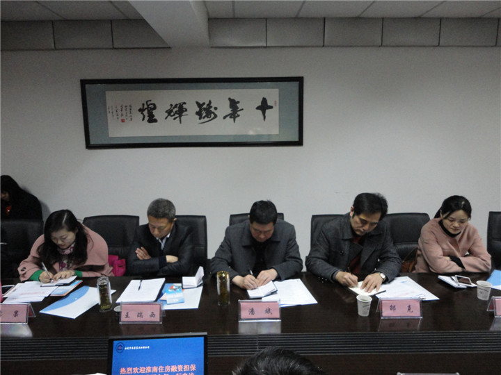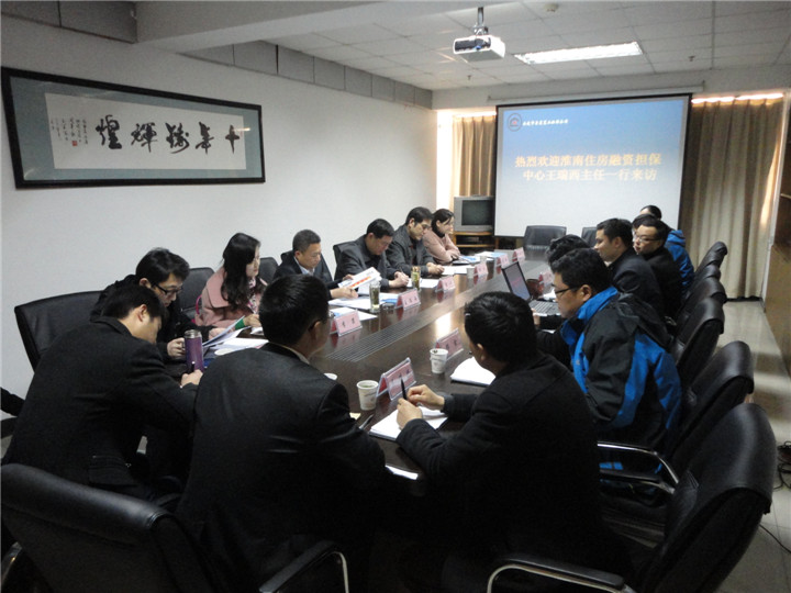 2015年3月19日,淮南市住房融資擔(dān)保中心主任王瑞西一行來到安慶市房屋置業(yè)擔(dān)保公司調(diào)研,雙方就縣域擔(dān)保分公司管理、市場(chǎng)性新業(yè)務(wù)拓展以及住房公積金貸款擔(dān)保行收費(fèi)新模式進(jìn)行了交流溝通。