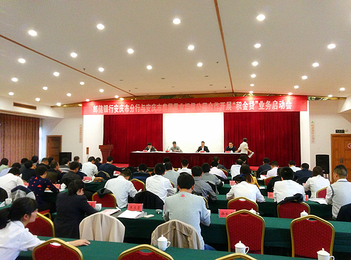 11月6日下午,安慶市房屋置業(yè)擔保公司與郵政儲蓄銀行安慶市分行聯(lián)合召開“置業(yè)消費貸”業(yè)務啟動會。安慶市房屋置業(yè)擔保公司董事長、總經(jīng)理沈軍、副總經(jīng)理鄧寅和郵政儲蓄銀行安慶市分行黨委書記、行長戴四清、副行長李金發(fā)等出席啟動會,擔保公司七縣一市分公司經(jīng)理及郵儲銀行各縣支行行長等60余人參加了會議。