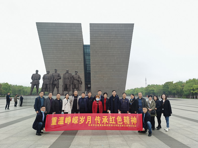 4月25日,安慶市房屋置業(yè)融資擔(dān)保公司黨支部組織全體黨員到渡江戰(zhàn)役紀(jì)念館,把黨史學(xué)習(xí)教育的課堂搬到這里,開展“重溫崢嶸歲月、傳承紅色精神”主題黨日活動(dòng)。渡江戰(zhàn)役紀(jì)念館坐落在巢湖之濱,以基本展陳《百萬雄師過大江》為主線,共展出珍貴歷史照片、文物、油畫、雕塑2500余件,再現(xiàn)了革命艱難歷程、軍民團(tuán)結(jié)一心的恢宏篇章。通過一件件歷史文物、一幅幅革命影像,為我們?cè)佻F(xiàn)了軍民奮勇渡江作戰(zhàn)的壯闊畫面。活動(dòng)期間,再次重溫了入黨誓詞,部分黨員還分別進(jìn)行了戰(zhàn)役介紹、戰(zhàn)役中的小故事、觀后感活動(dòng)。不忘歷史,開創(chuàng)未來,通過追尋渡江戰(zhàn)役英烈們的足跡,牢記革命先烈浴血奮戰(zhàn)、不怕犧牲的歷史,感悟初心使命,汲取奮斗力量,為推進(jìn)置業(yè)擔(dān)保國有企業(yè)改革發(fā)展開拓新局面。活動(dòng)還邀請(qǐng)了局紀(jì)檢組、機(jī)關(guān)黨委、企指科和股權(quán)單位相關(guān)負(fù)責(zé)人參加。